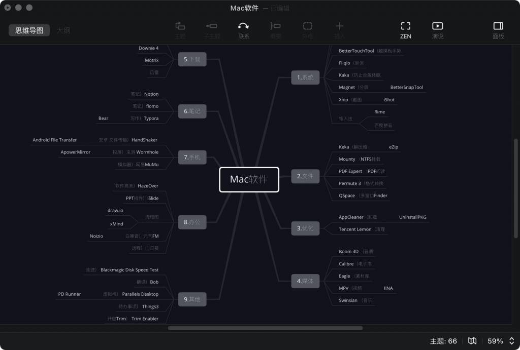 看过我文章的都知道,我习惯在文章开始时放上文章的整体架构或内容总览,这些都是通过XMind绘制的。这款也算是家喻户晓的App了,Windows等多平台使用,颜值高、界面简单、提供多种主题内设,可以更加灵活的输出思维导图。